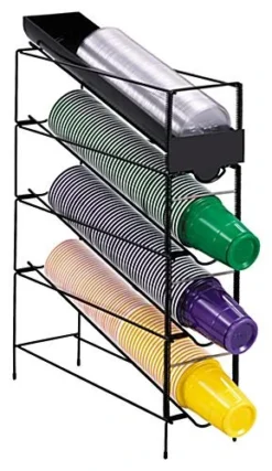 Cup & Lid Organizer, 4 Compartments, Tabletop Or Wall Mount – Black