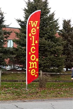 14′ Feather Flag & Ground Spike With Pre-printed WELCOME Message – Yellow & Red