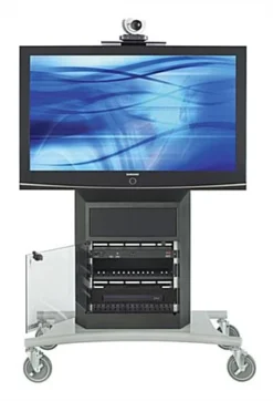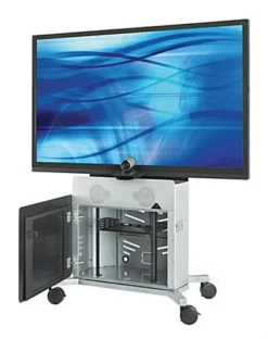TV Cart With Mount For Monitors 55″, Storage Cabinet, Camera Shelf – Black