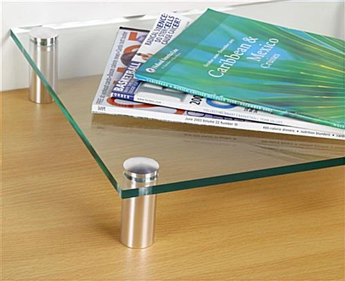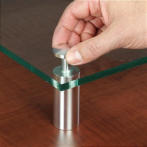 These aluminum standoffs are the largest size we carry. Best suited for flat applications such as displays for merchandise, stand-offs deliver with quick assembly and sharp looks. These aluminum standoffs boast a bright polished finish. They look exceptional. These display mounts are the perfect stand-offs one would want to use in retail displays.