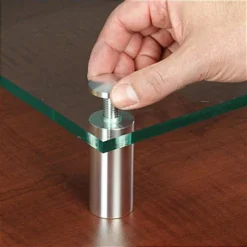 Used for shelf supports, these stand-offs can handle up to 1-1/4″ thick material. You’ll need 1/2″ holes drilled through the panels. A few twists of the standoff caps later and you have an instant table or shelf. This beautiful display hardware shows itself off in window displays, waiting rooms, and receptionist counters. How about hangers for merchandise? The applications are endless!