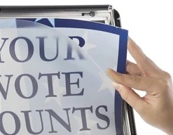 Designed to bring attention to products, this black 11 x 17 poster frame pedestal is the ideal floor stand for displaying signage and menu offerings! Each sign holder features a super simple snap open enclosure which keeps pictures securely into place, but is easily interchangeable. The floor stand pedestal is the perfect way to promote sales, upcoming events, and new products! Design flashy advertisements and use this sign holder to catch the attention of potential customers! Restaurant owners can use the pedestal to showcase new menu offerings or cocktail selections. The advertisement display shown here is also available in varying finishes and sizes!