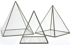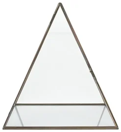 Our glass pyramid display case is a great way to exhibit your most valued possessions. This geometric shadow box features an antique gold frame with faceted transparent panes to highlight contents held inside. Designed to sit on a tabletop, this enclosed decorative fixture has overall dimensions of 12″ x 15″ x 12″. More than just a typical shadow box, use this glass pyramid display case to showcase store merchandise, collectibles, antiques and much more. Each decorative fixture has a transparent swing-open door with latch enclosure to keep contents safe and free of dust, dirt, and fingerprints. Great for tradeshows, museums, retail stores, showrooms and the home, this glass pyramid case will make for the perfect addition to any tabletop space!