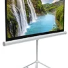 This projection screen is the largest projector display offered on this site. Are you shopping for a fixture with a huge display surface for an upcoming presentation? Do you need a projection screen that will be large enough to be seen from the back of the room? This portable projector display will surely meet or exceed your need. This projection screen may not be suitable for all applications such as tradeshow booths. Most standard booth areas are 10’x10′. At 12′ wide and 9′ high this projection screen is best for large conference rooms, cafeterias, and gymnasiums. The 104″h x 140″w display surface is suitable for audiences over 50′ away!