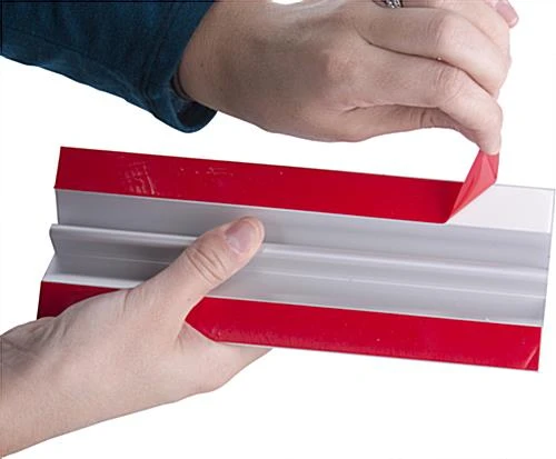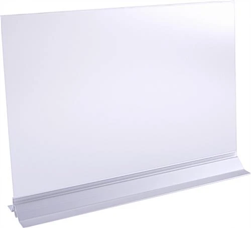 The 17 x 11 vertical sign holder consists of 2 components including a flexible clear acrylic lens and a silver base. The bottom loading display with a width of only 3” creates a small footprint that takes up little space on a busy counter without getting in the way of business. Adhesive tape is featured on the base of the frosted acrylic sign holder that provides 2 options for display including tabletop and wall mounting alternatives. The flexible frameless lens that is fixed in landscape orientation is clear on either side making this graphics stand double sided. To replace with a new image, simply slide the sleeve out of the sign holder, insert a new picture into the bottom loading opening, and replace back into the base. Quickly and easily change 17 x 11 graphics and draw attention to the information posted about your products, services, business hours, or office policies!
