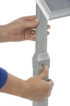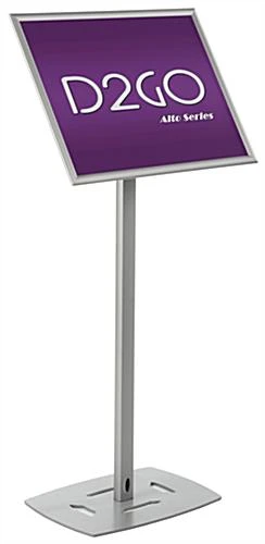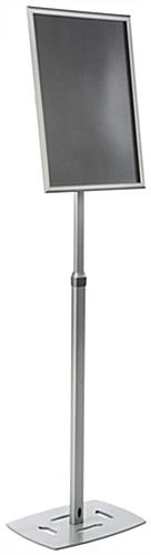 Built to bring instant attention to custom print ads, this silver 18 x 24 poster frame pedestal is a great sign holder for any business with a product to sell! Each snap open display makes it super easy to interchange revolving menus or flyers. The aluminum frame pedestal is built with a sturdy weighted base, ensuring the unit will stay erect at all times. Each sign holder adjusts from 56.5”h to 75.5” h to suit the particular vantage point your facility requires. Display a frame pedestal with trendy custom prints at the entry of any location to inspire product purchases and educate your customer! The advertisement fixture shown here is also available for purchase in other various sizes and colors!