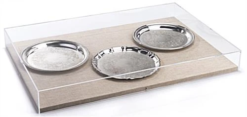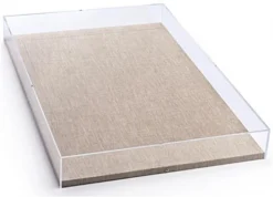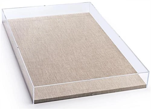 Create a contemporary exhibit with this oversized fabric back wall display frame to properly showcase your artwork. The clean lines of the acrylic cover and linen base provide the ideal backdrop for 20” x 30” graphics. Whether at an art exhibit or your own living room, paintings will be presented in classic allure with this contemporary fabric back wall display frame. Mount portrait artwork in your studio or lay sophisticated jewelry on your retail countertop and ensure they are kept intact and properly showcased. The clear cover screws onto the backboard to keep dust and other elements from damaging the graphics hanging inside. Included are 2 screws and hooks that attach to the linen base for hanging paintings underneath the casing. Ensure your images are highlighted properly and securely with this wall display frame.