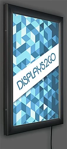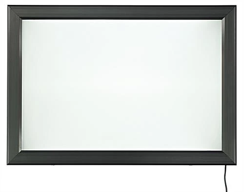 Use this black LED backlit frame to promote an upcoming movie, display your restaurant’s menu, or showcase a new item at your store. A waterproof light box offers features that allow it to be used by a wide array of industries. This outdoor backlit frame can be mounted vertically or horizontally, depending on the orientation of your poster. Protect your sign from the elements and vandalism by locking the hinged door of this light box. Powered by energy efficient technology, this backlit frame enhances the visibility of your poster in high traffic venues like malls and lobbies. With its neutral yet stylish color, this sign display can complement nearly any setting.
