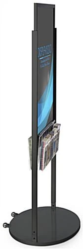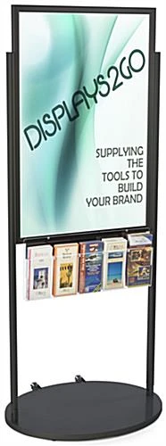 This black 24 x 36 mobile poster display with 10 literature slots for advertisements is a great way to show off your businesses merchandise and services. The sign holder features an acrylic brochure pocket providing an additional way of connecting the content within the advertising graphics with the customer. The moveable poster display has an easy top loading insert in the frame for simple interchanging of your prints. In addition, the panel comes with a heavy duty rolling base that’s easy to move around your business for better product connectivity. The poster display has a sleek glossy black frame with a modern edge which will fit anywhere within your business setting. Each double-sided panel is perfect for promoting your graphics with a signature sign holder to enhance your customers shopping experience.