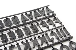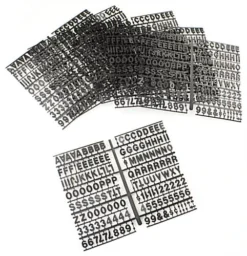 These sign letters attach to grooved message boards such as the MNULTBDSM menu display. The black characters are easiest to view when used on top of a white background. These sign letters, also known as replacement menu board inserts, include tabs to easily insert your characters into letterboard channels. The changeable numerals include 6 sheets of numbers, symbols and all of the ABCs. The set includes 900 characters! These sign letters can be used on a variety of menu boards and message displays. The tabbed characters kit has more vowels and primary consonants. (Please view the PDF document linked below for actual counts.) These sign letters are made from injection molded plastic.