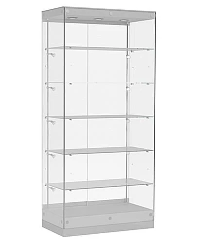 This modern LED display case strikes the perfect balance between sturdy construction and contemporary looks. Built with tempered glass, this unit is reinforced for extra strength and resistant to scratches. Keep your energy bills low with this 36” wide display case, courtesy of its energy efficient top and side cabinet lights. Its frameless design gives this unit a contemporary look while providing a clear view for customers to peruse your merchandise. Featuring removable and adjustable glass shelves, you can use it for objects as small as a pair of priceless earrings or as big as a trophy that reaches the top of your display case. For a more dynamic exhibit, fix the adjustable cabinet lights to perfectly illuminate your merchandise.