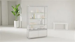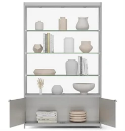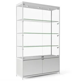Built from durable aluminum and tempered glass, this LED retail showcase was built to present your merchandise for years to come. With 3 ceiling and 4 side lights your products will always be in the spotlight for maximum exposure to potential consumers. Each glass showcase also features an underneath storage area with locking hinged doors to store extra products or supplies in safety. Conveniently turn your display case on and off with the hidden top switch while keeping the 11.5’ cord plugged in. Featuring 3 long glass shelves helps provide plenty of storage space for collectables, electronics, jewelry, and more! Get a display case or retail showcase for your store today and start showing your merchandise off in style.