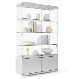 Built from durable aluminum and tempered glass, this LED retail showcase was built to present your merchandise for years to come. With 3 ceiling and 4 side lights your products will always be in the spotlight for maximum exposure to potential consumers. Each glass showcase also features an underneath storage area with locking hinged doors to store extra products or supplies in safety. Conveniently turn your display case on and off with the hidden top switch while keeping the 11.5’ cord plugged in. Featuring 3 long glass shelves helps provide plenty of storage space for collectables, electronics, jewelry, and more! Get a display case or retail showcase for your store today and start showing your merchandise off in style.