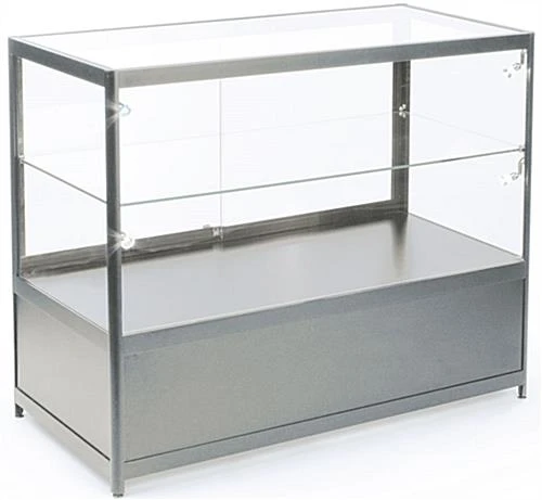 Present your high value merchandise in elegance with this display counter with LED lights. Made with tempered glass, this retail case provides customers with a clear and full view of your top items. A prime way to feature jewelry, this illuminated display counter brings out the sparkle and shine of your finest pieces. For easy restocking, place backup inventory in the storage cabinet under the case. With its adjustable glass shelf, you can merchandise products of varying sizes to make the most of your space. Both the cabinet under the display counter and the case itself are lockable and include matching keys. With these security features, this fixture is not only used in retail settings for jewelry and electronics, but has also became a mainstay of museums and business lobbies.