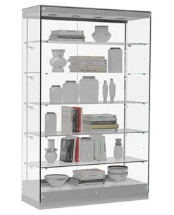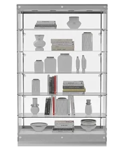 Make merchandise updates a breeze with these contemporary glass display cabinets. Featuring adjustable shelves, these units let you swap out your showcase for products of nearly any size and shape. These modern glass display cabinets feature a frameless design, giving customers a clear view of its contents. With lockable doors, these units allow you to keep your products secure without removing them to a separate storage area. Between its security features and modern look, these glass display cabinets are a go-to fixture for museum exhibits, jewelry shops, department stores, and even hotels. For even more versatility, you can remove the adjustable shelves to accommodate large items like sculptures or trophies.