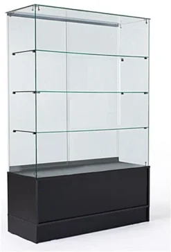Merchandisers utilize the open design of this freestanding display case to increase product visibility in any retail environment. With a high-end, frameless, design this glass showcase features quality construction at an affordable price point. This frameless fixture maximizes exposure by enabling customers to view merchandise from all multiple angles without aluminum or wooden edges obscuring their view. Small aesthetic choices such as utilizing these freestanding display cases will improve the overall ambiance of any business. Retailers, schools, and various other businesses use these fixtures to showcase trophies, antiques, electronics, and high-end specialty products.