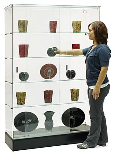 These store display cabinets enhance the look of your displayed items. Built from with a black melamine base, these display cases are durable for use in various retail settings. Store display cabinets, such as curio showcases and display cases are made with a frameless design to offer customers a full view of the items displayed in the case. Finely crafted with a modern and sophisticated design, these store display cabinets provide a contemporary means of showcasing your merchandise or collectibles. Display your merchandise with the confidence that your products are secure with these display cases.