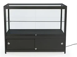 This LED retail store counter is the ideal cabinet for jewelry boutiques, museums, or collectible shops. The glass display includes 1 tempered panel shelf which makes it strong enough to hold items that are heavier in weight. The knockdown store counter ships unassembled to reduce shipping costs for the consumer. Illuminate your jewelry with the 4 energy efficient side lights for a longer lasting glass display. The sliding display and storage doors give you easy access to your items within the store counter. Add this beautiful display cabinet to attract consumers and showcase your high end items!