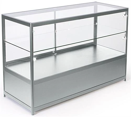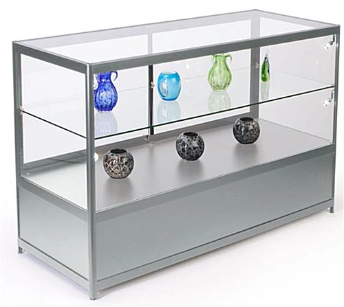 For busy retail shops, this glass store counter with LED lights makes your day-to-day tasks simpler. With its locking doors, these display cases allow you to keep expensive merchandise like jewelry and electronics out on the shelves during business hours. This tempered glass store counter doesn’t sacrifice visibility for security, providing customers with an obstruction-free view of your products. Restock your display cases on the fly by keeping backup inventory in the locking cabinet. Adjust the shelf to fit anything from collectibles to jewelry to trophies and more. Use this glass store counter as a standalone fixture or with other compatible display cases to create a seamless configuration for your retail setup.