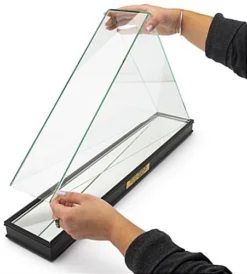This personalized plaque flag display features an authentic solid wood black panel, perfect for showcasing 5′ x 9.5′ triangle folded banners or veteran memorabilia. The shadow box also has a sleek mirrored bottom that looks up into the glass case, an will subtly accent burial ensigns on exhibit in homes, offices, civic organizations, American Legions, and more. The UV-protected glass on the countertop personalized plaque flag display will preserve your items from fading, lasting for years to come. This American-made shadow box includes felt tabs on the underside to prevent scratching on furniture and on the case itself. You can engrave up to 3 lines of text with 40 characters or less, creating the perfect commemorative keepsake. Our 5′ x 9.5′ triangle countertop frame is an excellent way to remember and cherish veterans, firefighters, police officers, and many more who served for our country. Use this unique personalized plaque flag display to protect your loved one’s burial casket banner from dust and dirt while showcasing it in exhibits and homes.