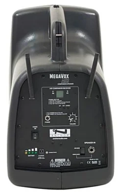 This portable PA system with wireless mic includes two speakers, two speaker stands, and a handheld microphone for a complete audio equipment setup. As a result, the speaker can move around the platform without wired constraints. This portable PA system with wireless mic includes the MegaVox 2 speaker with a crowd reach of 1,000+ people, allowing for the equipment to be used at conferences with many attendees. The Mega2-AIR is a companion speaker with an AIR wireless transmitter that can double the sound range and avoids the hassle of connecting extra cables. Connect up to four handheld microphones to accommodate group vocal performances. A 12V battery operates for up to 8 hours on one charge. The tripod speaker stands have a center point connection for ideal stability in indoor and outdoor environments. Our black portable PA system with wireless mic is a complete audio equipment solution for your next conference, talent showcase, or award ceremony.
