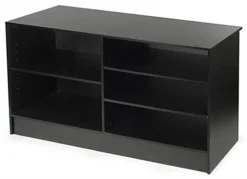 Keep employees organized with these black checkout counters. This counter features plenty of room to store all of the items necessary for smooth customer transactions. Underneath the checkout counter are two large areas for storing returned items or “on hold” merchandise. Adjust the size of these storage areas with three adjustable shelves. With adjustable shelving, you can easily accommodate larger or smaller merchandise as well. Set up a register on top of the flat surface and leave extra space for ringing up items and bagging products.