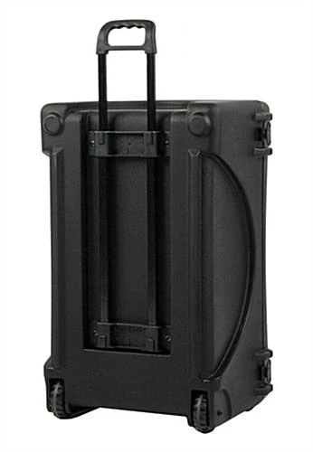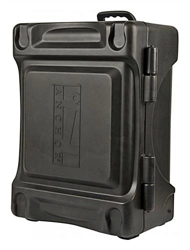 This carrying case with foam for speakers is portable and allows you to conveniently and safely transport your speakers to community celebrations, school events, and ceremonies. The unit is available in black and features a retractable handle and casters. The container also features custom-cut inserts designed to securely transport one speaker and microphone while preventing your equipment from shifting. The retractable handle and casters make transporting your equipment in this black carrying case with foam for effortless while providing peace of mind knowing that your equipment is secure.