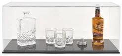 These model ship cases are ideal countertop displays for protecting your collectibles from unwanted dust and damage. Each unit is skillfully crafted from 1/4″ thick acrylic for increased durability. These rectangular model ship cases, also known as acrylic collectible holders, have a clear top with a black base that will highlight contents as well as complement any décor. Each collectible display measures 29″w x 11″h x 11″d in size, to hold large airplanes, hand-crafted ships, antique swords, multiple diecast cars or a complete collection of action figures. These frameless model ship cases enable viewers to easily see the showcased item. These displays are designed for placement on a counter or tabletop.