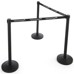 This is a black custom stanchion belt with 1 color printing offering a personalized crowd control option. Compatible with the QueuePole.Economy Series, each retractable band measures 6.5′ in length. Available with single or double sided graphics, these nylon straps can be designed to showcase logos and brand embellishments utilizing silkscreen applications. Secure the plastic cartridge to coordinating posts with screws for a quick and easy assembly!