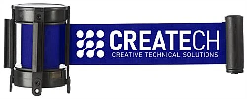 Blue Custom Stanchion Belt with 1 Color Printing & 6.5′ Retractable Belt