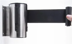 Each wall mounted retractable barrier, that is a line stanchion, comes with the required hardware. Mount this unit to several different surfaces securely. A wall mounted retractable barrier, that is stainless steel, can be paired with other queue poles. Attach this mount to multiple floor-standing stanchions. Each wall mounted retractable barrier, also known as a queue pole, is sold at an economical price. Purchase these stanchions for movie theaters, sports games, and other events. A crowd control unit, wall mounted retractable barrier will keep high traffic areas organized!