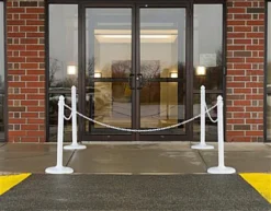 Ideal for recreational settings, such as parks or zoos, these black plastic chain stanchions are versatile for indoor or outdoor use. Each QueuePole.Outdoor kit arrives complete with a post and linked rope that can be used to create lines for crowd control or act as a barrier to prevent admittance. Easy to assemble, the outdoor plastic chain stanchions are lightweight for portable use but can be weighed down with sand for extra stability. Pour the sand in the base before installing the pole for a total of 15.5 lbs, which will help keep the unit upright on windier days and busy events. This crowd control kit is designed for both function and aesthetics, with a neutral color and decorative acorn top to complement any environment. Each link belt reaches 6.5’ in length and attaches to the 2 C-hooks built into the barrier post for a stable set-up to manage lines of people or prevent access. Where traditional metal poles cannot be used outside for extended periods of time, these plastic chain stanchions are rust-proof and fade-resistant to keep their great look, rain or shine!