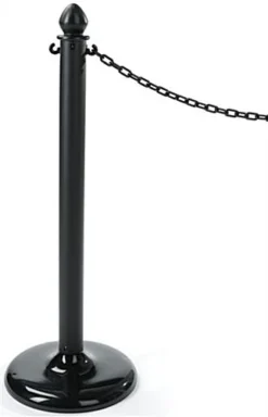 Ideal for recreational settings, such as parks or zoos, these black plastic chain stanchions are versatile for indoor or outdoor use. Each QueuePole.Outdoor kit arrives complete with a post and linked rope that can be used to create lines for crowd control or act as a barrier to prevent admittance. Easy to assemble, the outdoor plastic chain stanchions are lightweight for portable use but can be weighed down with sand for extra stability. Pour the sand in the base before installing the pole for a total of 15.5 lbs, which will help keep the unit upright on windier days and busy events. This crowd control kit is designed for both function and aesthetics, with a neutral color and decorative acorn top to complement any environment. Each link belt reaches 6.5’ in length and attaches to the 2 C-hooks built into the barrier post for a stable set-up to manage lines of people or prevent access. Where traditional metal poles cannot be used outside for extended periods of time, these plastic chain stanchions are rust-proof and fade-resistant to keep their great look, rain or shine!