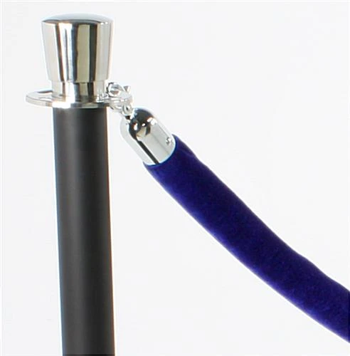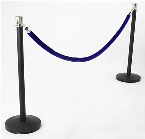 Stanchions Set Includes (2) Black & Chrome Posts w/ (1) Blue Velvet Rope | QueuePole Post & Rope Line