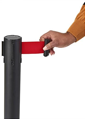This red retractable belt barrier is an effective crowd control solution for indoor businesses and venues. The 2″ wide nylon belt is housed within a 4-way cartridge that allows for multiple configurations. Our indoor red retractable belt barrier has a weighted round black metal base to provide stability for crowd control in heavily-trafficked areas. The black cartridge holds the expandable 6.5-foot long belt securely, making this stanchion quick and easy to set up. The 12.6″ diameter rubber base prevents the floor from scratching. Our Value series red retractable belt barrier will add functionality to your safety process, sales counter, or retail shop!