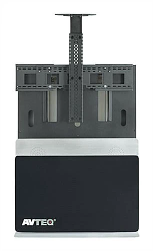 This office flat panel TV stand, also known as an LCD mounting display, includes a camera shelf with many position options. These LCD holders with a black and silver finish are 58-1/2″ tall which is ideal for conference rooms. This video conference flat panel TV stand is designed with all of the features needed for simple virtual meetings. Featuring a slide-out equipment compartment, this conference room furniture is an ideal presentation tool. The interior compartment rack is 19″ wide and 20″ deep. The standard 19″ vertical rack bracket has 10RU (rack units) of space. This storage space provides ample room for all necessary equipment including cable boxes, CPU towers, internet modems, and more! This deluxe plasma monitor display includes a universal VESA bracket to work with nearly any monitor of the right size.Manufacturer model# ELT-2000S