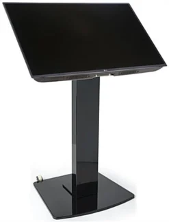 Use our LCD monitor floor stand to create an interactive kiosk for your touch screen displays. Complete with two mounting brackets, these units can safely hold flat panels ranging from 10” to 60”. Additionally, the black LCD monitor floor stand has a flat base for stability with two casters in a tilt-and-roll design that allow for easy mobility. A lockable compartment located on the back of the kiosk encloses an opening for the included surge protector as well as other cables. The easy loading brackets allow you to install an LCD monitor onto the unit without hassle. Use this screen display stand in your store, school, lobby or other high traffic area to offer direction or showcase promotions on an interactive flat panel.