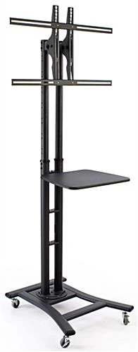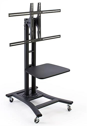 This monitor and digital equipment stand has (4) locking wheels that make each presentation display highly mobile, and once in a desired location you can lock the wheels to increase stability. The stand has a tilting mount as well that allows you to angle your television down up to 15° for better view. This flat panel stand’s bracket is sized to hold a 37″ to 65″ television that weighs up to 110 lbs. The compatible mount supports 200mm x 200mm to 800mm x 400mm. We ship this black finish aluminum stand unassembled and it’s easily put together in a few minutes using the provided tools and instructions. This durable monitor or presentation stand is made of metal to last for years to come, and the sleek, wheeled design easily fits in with any surrounding!
