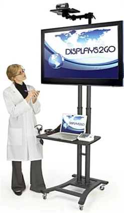 Black Teleconferencing TV Stand with AV Shelf & Camera Tray