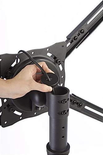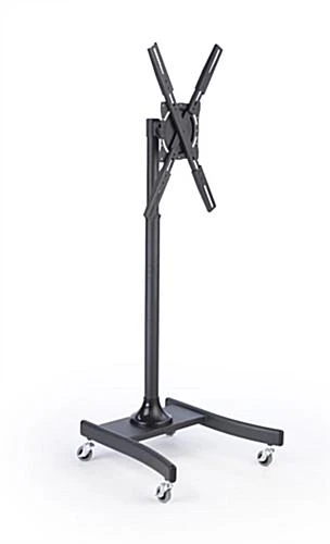These cost-effective LCD TV stands display (1) flat screen monitor between 32” and 47” that weighs less than 77 pounds. Assembly is quick and once the unit is fully functional, the height of the flat panel plasma display can be easily adjusted to (1) of (7) different levels. Electrical cords are conveniently stored inside the tower of the structure, minimizing the possibility of tangled cables and accidents. These affordable LCD TV stands with wheels have locking casters to help keep the unit stationary when in the locked position. This mobile floor cart weighs 52 lbs., is compatible and can fit any LED monitor measuring 32″ to 47″ that weighs less than 77 lbs. These mobile displays, affordable LCD TV stands enable users to easily mount flat screen televisions, can unscrew and rotate to install a display vertically or horizontally, depending on preference and use. The mounting bracket can tilt 25° down, allowing the plasma monitor to be positioned at the perfect angle. These are affordable LCD TV stands that can be stored against a wall when the unit is not tilted and the bracket is positioned vertical at 0°. The construction of this monitor rack is versatile, blends into any environment and is designed for economy use!