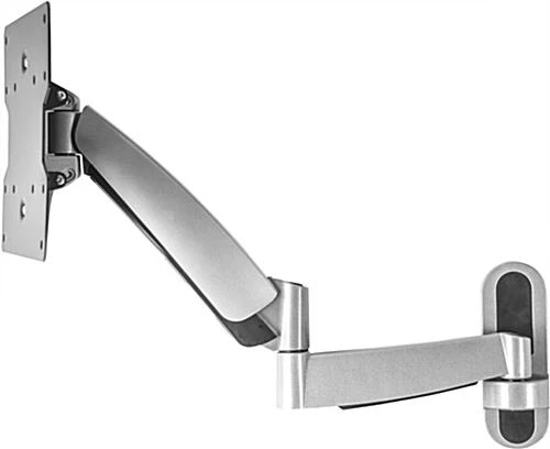 Each bracket, wall mounted monitor arm is VESA compatible which is standardized with manufacturers to fit most screens. This flat panel system is fixed to secure 100×100, 200×100, and 200x200mm LCD sizes. This wall mounted monitor arm holds approximately 23”-42” flat panel screens. Whether using this display for a computer or a television, this mount can withstand up to 44lbs of weight for a durable accessories stand. This wall mounted monitor arm that is for flat panel screens is great for both residential and commercial purposes. This LCD mount is favored at home, in the office, in hotels, and even in restaurants! The low profile and versatile design allows many options for purposing with this flat panel bracket! Even more, this wall mounted monitor arm, called a flat panel bracket, comes assembled for simple installation. Fast and simple to mount, this display is a great choice for a variety of circumstances!
