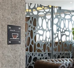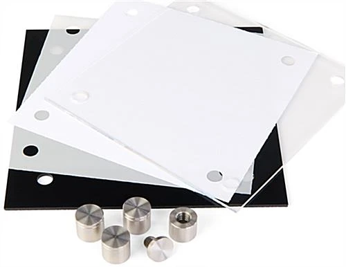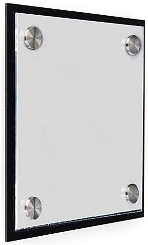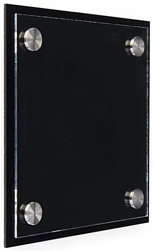 Name plates on doors allow a company to have personalized workspaces. Office signs are used to indicate room numbers, floor levels or employee titles for easy navigation. Custom plates on doors signs come with one type of printable film, frosted. Simply design a label with text and/or a logo and sandwich it between the two acrylic panels. For the plates on doors signage use any of our three downloadable templates. Print the office sign in B&W or color. The wall mounts are a print-it-yourself system that is more affordable than external printing. The film is easy to replace and the stainless steel standoffs offer a sophisticated look.