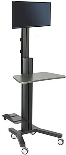 Rolling TV Stand, (2) 10 – 24″ Screens, Power Outlets, Keyboard & CPU Holder – Black