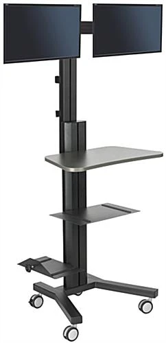 Rolling TV Stand, (2) 10-24″ Screens, Power Outlets, CPU Holder & Shelf – Black