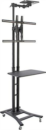 TV Stand With 19” Shelf, Fits Monitors 37” To 65”, Wheels – Black